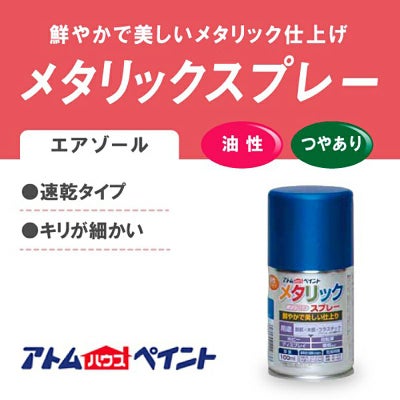 鮮やかで美しいメタリック仕上げ。速乾タイプ。 アトムハウスペイント メタリックスプレー 100ml