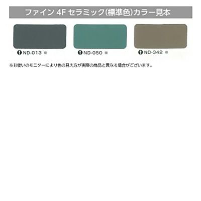 塩素を含まない、弱溶剤4フッ化フッ素樹脂塗料です。 日本ペイント ファイン4Fセラミック 塗料液・硬化剤セット標準色 濃彩 3色(ND-013 ND-050 ND-342) 15kgセット 高耐候フッ素樹脂塗料