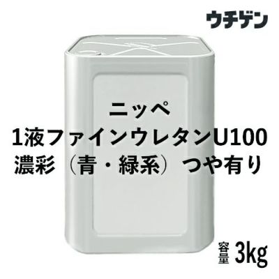低汚染性、高耐候性・1液ウレタン樹脂塗料のベストセラー! 日本ペイント ニッペ 1液ファインウレタンU100 濃彩(青・緑系)つや有り 3kg