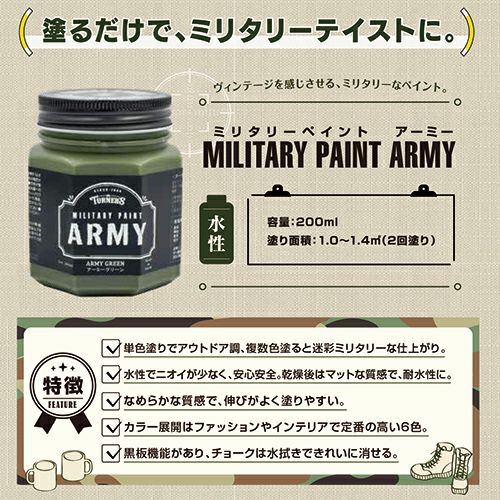 他の画像を見る 塗るだけでミリタリーテイストに。 ターナー色彩 ミリタリーペイント アーミー 1.アーミーグリーン 200ml 屋内外用水性塗料 MI200001 販売価格 ¥ 1,183 税込 会員価格あり カートに入れる お気に入りに登録する