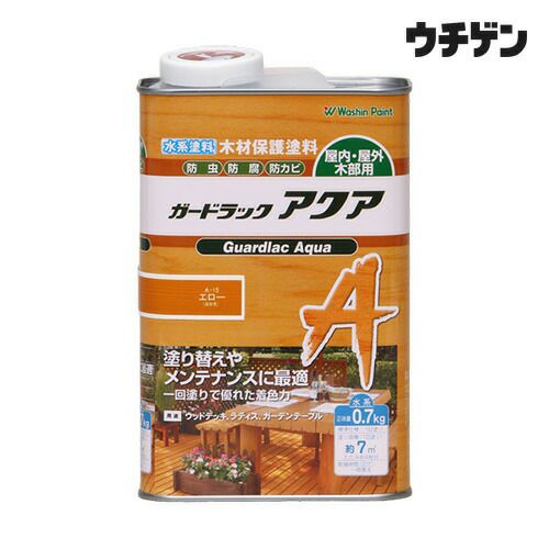 他の画像を見る プロ仕様の水性屋外木部用塗料 1回塗・高着色・塗替最適 和信ペイント ガードラック アクア エロー 0.7kg 販売価格 ¥ 3,328 税込 会員価格あり カートに入れる お気に入りに登録する